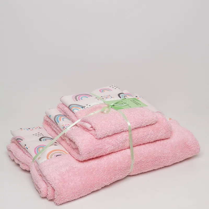Σετ παιδικές πετσέτες 3 τεμαχίων- Rainbow ροζ