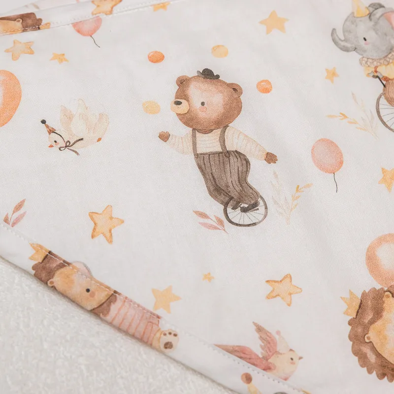 Ένα εξαιρετικά απαλό και κομψό βρεφικό μπουρνούζι, σχεδιασμένο για να προσφέρει απόλυτη άνεση και φροντίδα μετά το μπάνιο. Κατασκευασμένο από επιλεγμένο βαμβακερό ύφασμα σε συνδυασμό με απορροφητική πετσέτα υψηλής ποιότητας, αγκαλιάζει απαλά το ευαίσθητο δέρμα του μωρού, προσφέροντας ζεστασιά και αίσθηση πολυτέλειας.